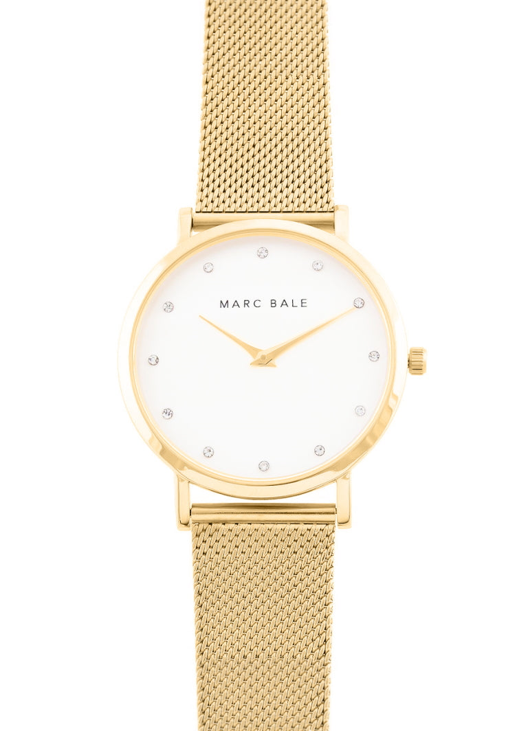 The Brillance Petite watch by Marc Bale features an elegantly adorned eggshell white dial with radiant Swarovski crystals. This exclusive design enhances our signature large twelve-index dial, giving it a fresh and luminous appearance, making it suitable for both daily wear and formal occasions.