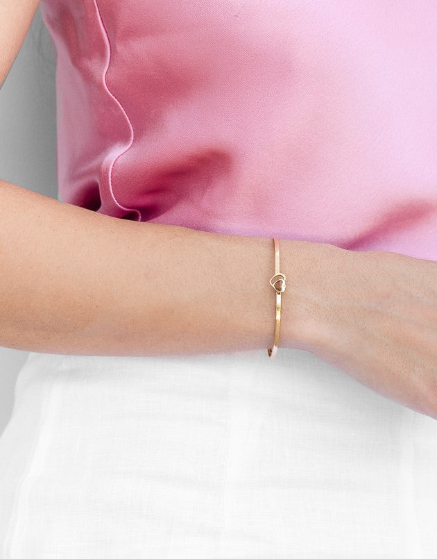 This elegant and minimalist bangle features a unique heart-themed closure that combines sophistication with a touch of romance.