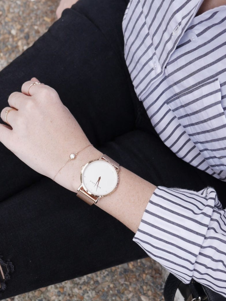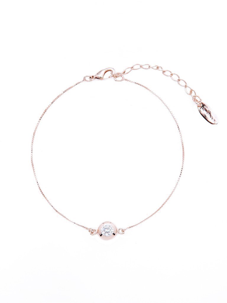 Suspended between two delicate chains, this elegant bracelet features a brilliant bezel-set cubic zirconia that will add glamour and sophistication to any ensemble.