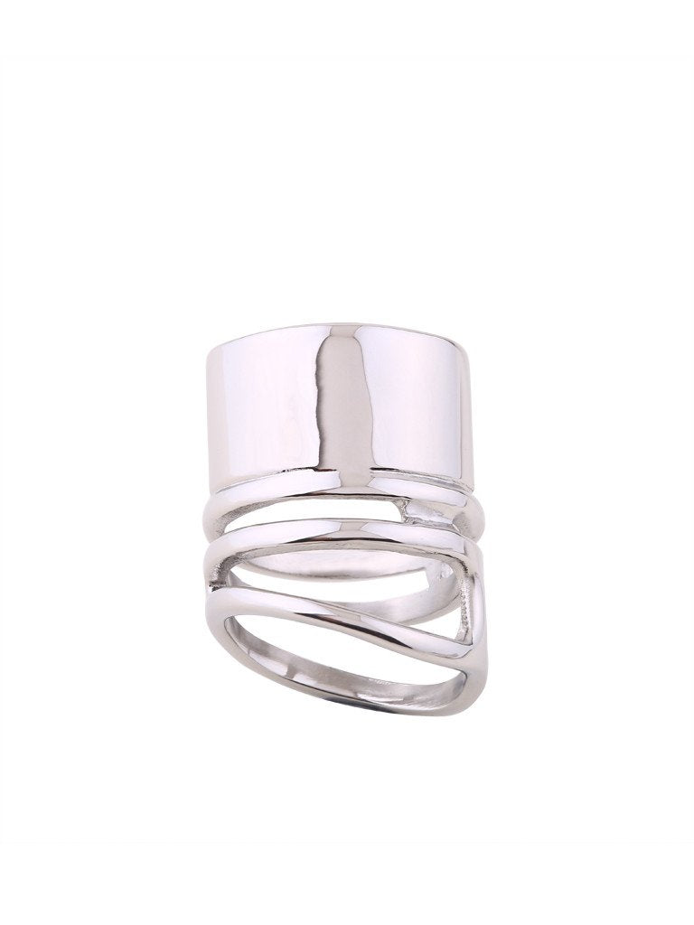 The 18K plated ring boasts a chunky feature band that melts and wraps effortlessly around the finger, creating a deep set and desirable statement piece.
