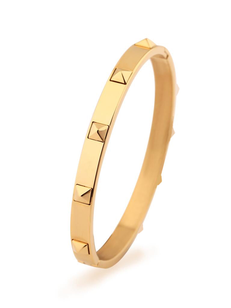 Sleek, bold, and contemporary—this bangle with striking pyramid studs is crafted to elevate any ensemble with ease.