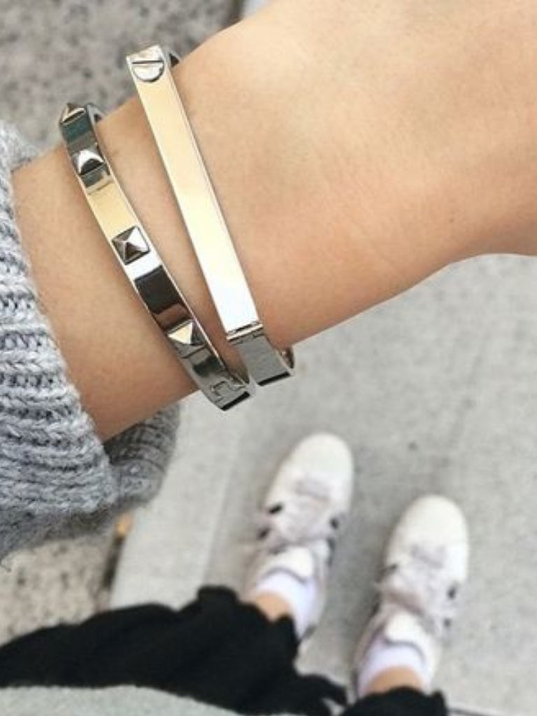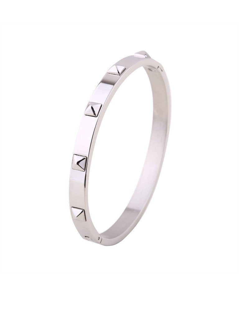 Sleek, bold, and contemporary—this bangle with striking pyramid studs is crafted to elevate any ensemble with ease.