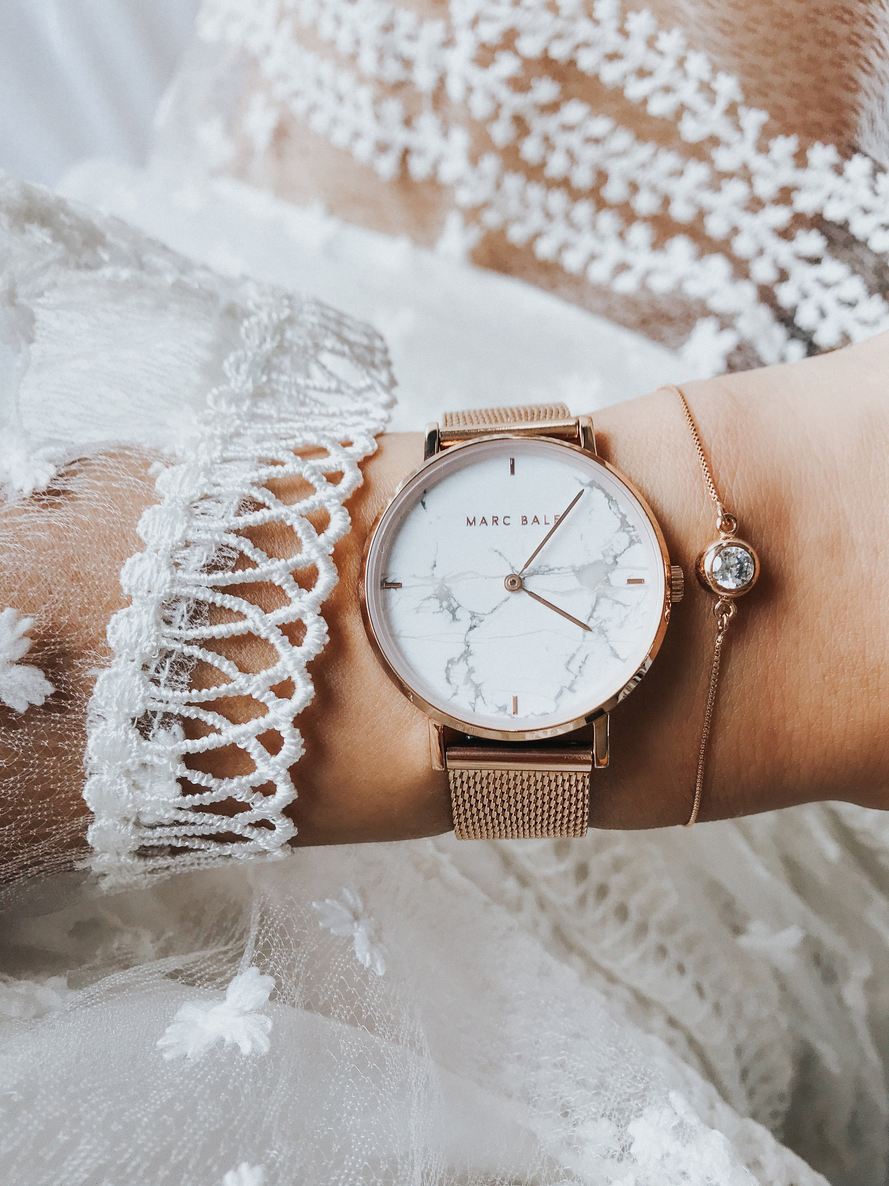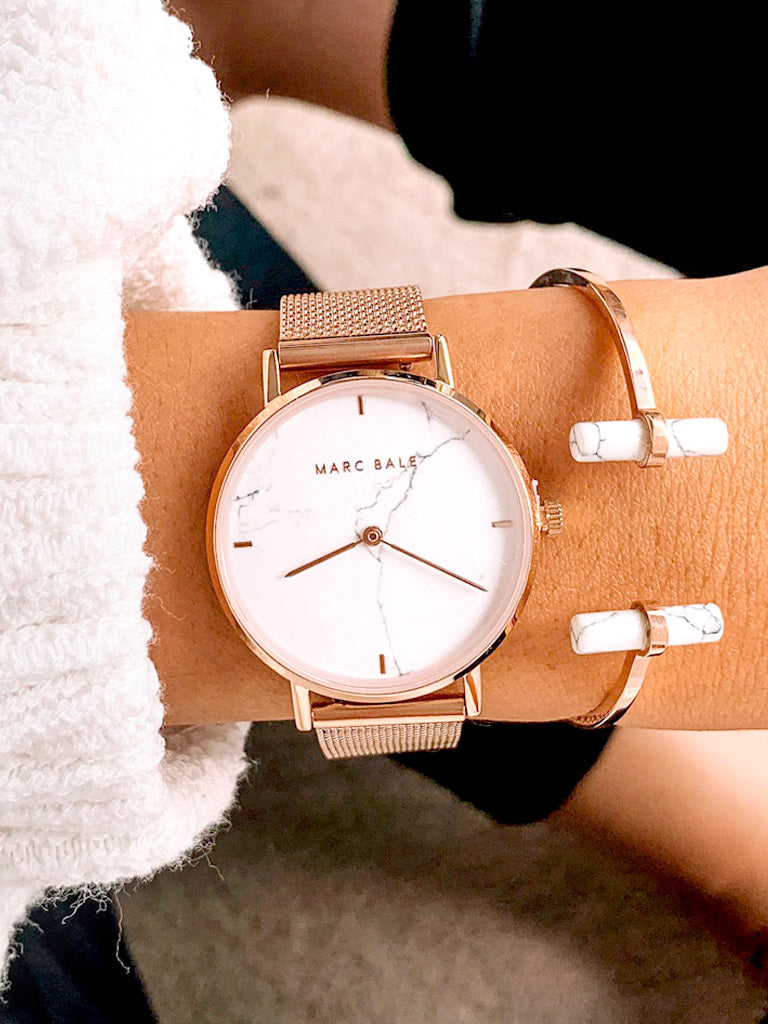 L'orologio è ulteriormente valorizzato da eleganti lancette a bastone in oro rosa, abbinate a indici minimali alle ore 12, 3, 6 e 9. Questo design minimalista consente al bellissimo quadrante in marmo di essere il protagonista, rendendolo un'aggiunta senza tempo alla tua collezione.