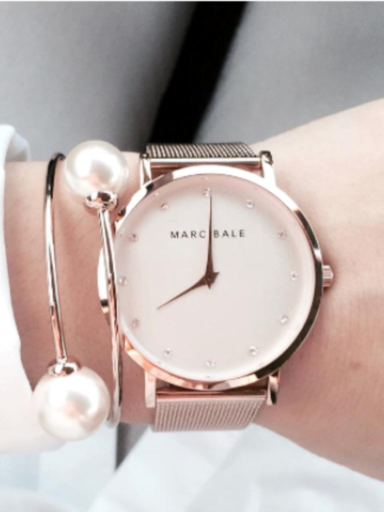 L'orologio Brillance Classique di Marc Bale presenta un elegante quadrante bianco guscio d'uovo decorato con brillanti cristalli Swarovski. Questo design esclusivo valorizza il nostro caratteristico quadrante a dodici indici, conferendogli un aspetto fresco e luminoso, rendendolo adatto sia per l'uso quotidiano che per occasioni formali.