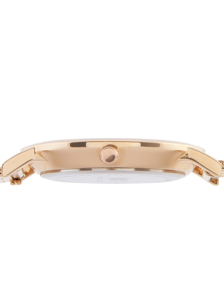 Brillance Classique posiada wymienny pasek z wytłaczaną siateczką, wykonany ze złoconej różowym złotem stali nierdzewnej.